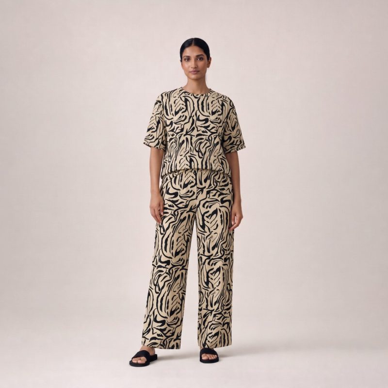 Women’s White & Black Abstract Print Two-Piece Set – Top & Pants