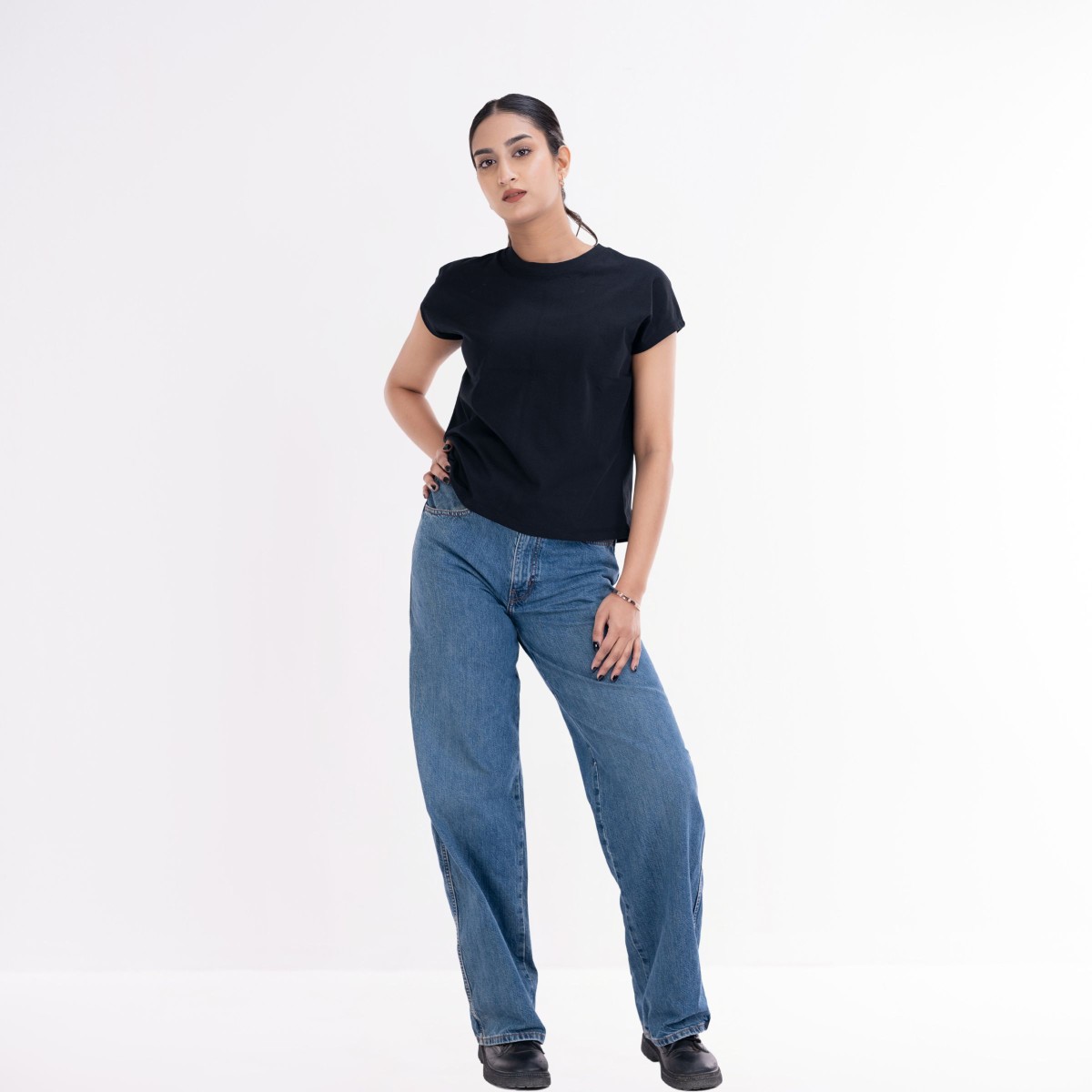 Whether you’re styling it for casual outings, coffee dates, or weekend wear, this black cotton tee brings effortless confidence to every outfit.