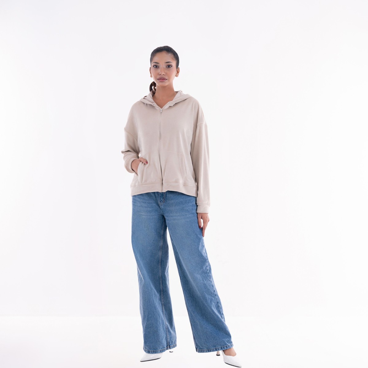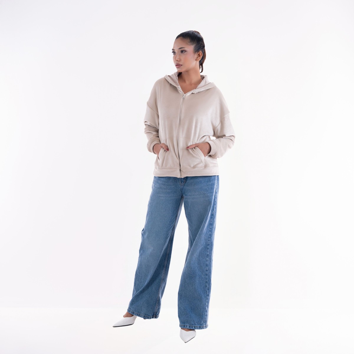 Women’s Premium Beige Velour Zip-Up Hoodie