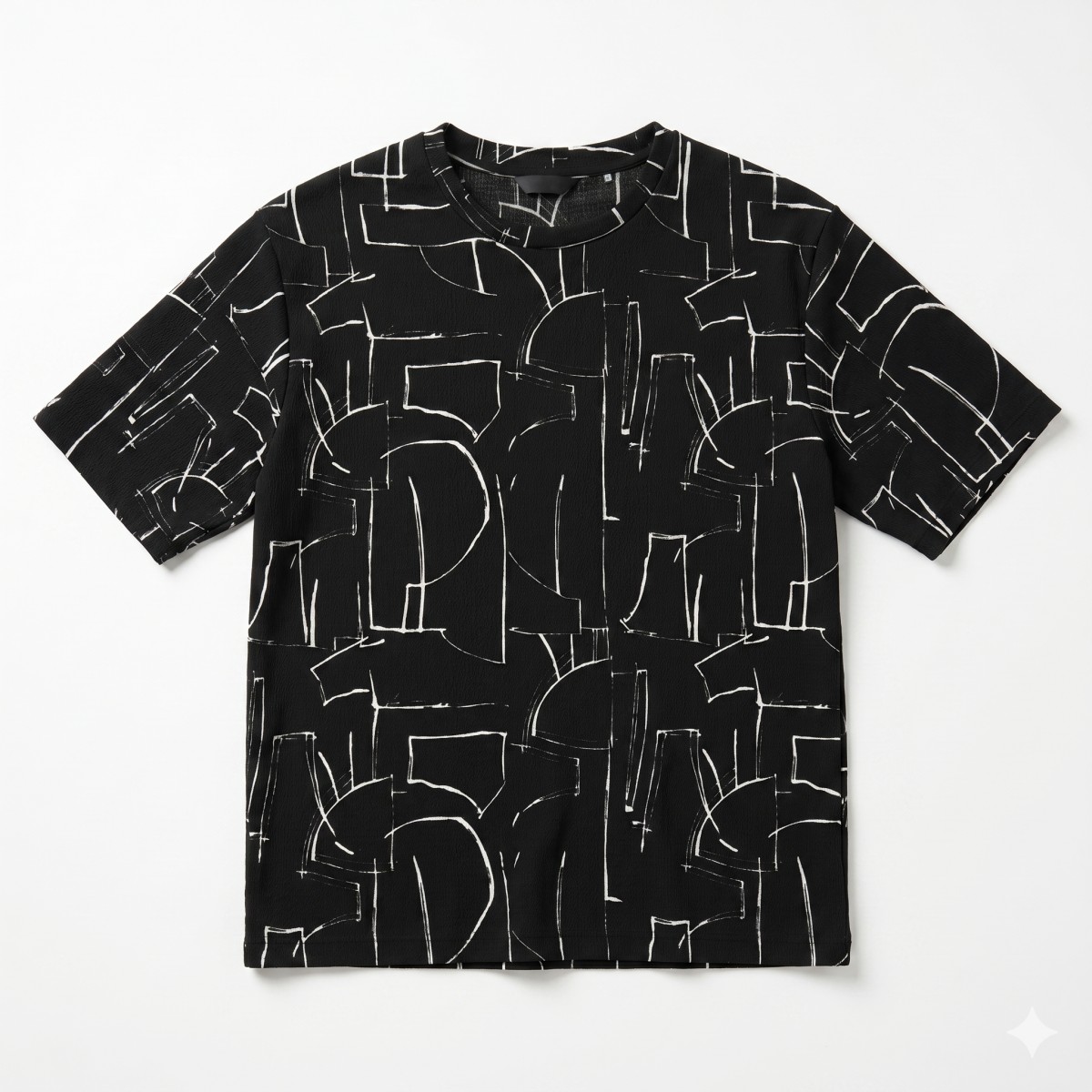 Women’s Black Abstract Two-Piece Set – Top & Bottom