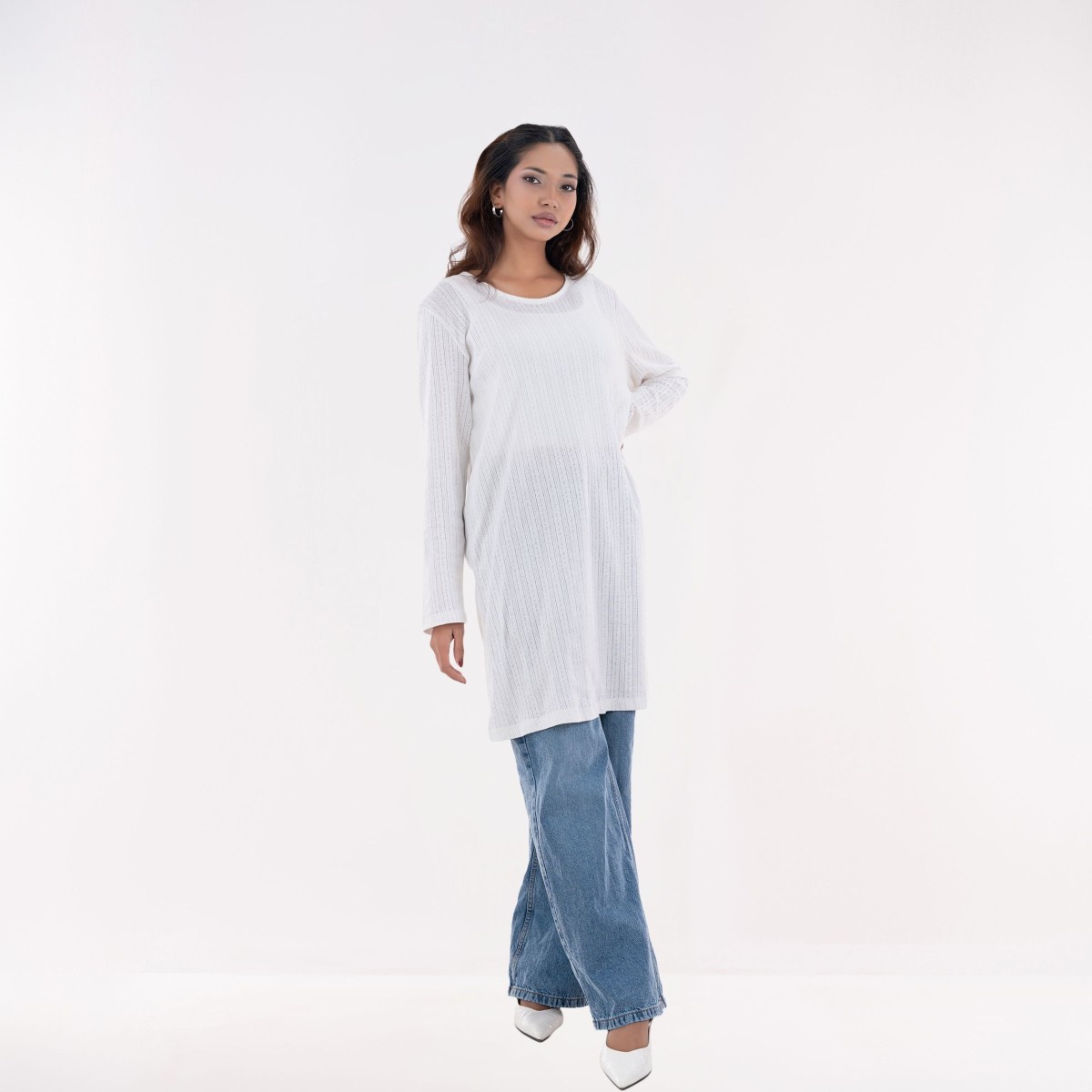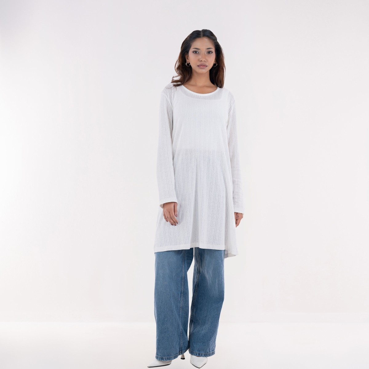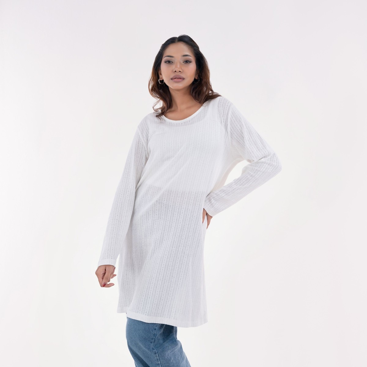 Stay effortlessly chic with this Women’s White Long Sleeve Textured Cotton Tunic T-Shirt from Sonder BD. Designed with a soft breathable cotton fabric and a relaxed oversized fit, it’s perfect for casual wear, daily outfits, or modern minimalist looks. The ribbed texture adds subtle detail, making this white cotton tunic top a must-have for versatile styling and comfort.